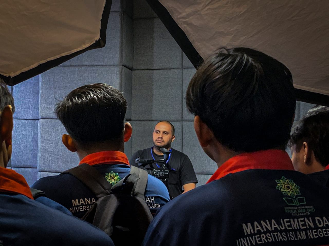 Kunjungan berlanjut ke Ruang Radio, yang telah beroperasi sejak tahun 2011. Mahasiswa memahami bahwa penyiaran tidak sekadar berbicara di udara, tetapi juga melibatkan kemampuan membangun kedekatan emosional dengan pendengar melalui pengelolaan intonasi dan ekspresi suara. Di Ruang Marketing, mahasiswa diperkenalkan pada konsep riset kata kunci (keyword research) untuk mendukung strategi promosi digital. Penggunaan data volume pencarian membantu menentukan kata kunci yang relevan agar konten lebih mudah ditemukan oleh audiens. Kegiatan diakhiri di Ruang Percetakan, yang menunjukkan tahapan akhir produksi media cetak. Mahasiswa menyaksikan secara langsung proses percetakan yang dilakukan dengan sistem presisi tinggi, menegaskan bahwa media cetak masih memiliki peran penting di tengah perkembangan teknologi digital.